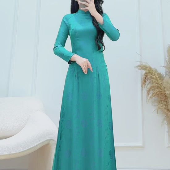 Embrace timeless elegance in this beautifully brocade Ao Dai – a graceful blend of Vietnamese tradition and modern style. Designed for comfort and sophistication, this set is perfect for Lunar New Year, weddings, formal gatherings, and cultural celebrations.