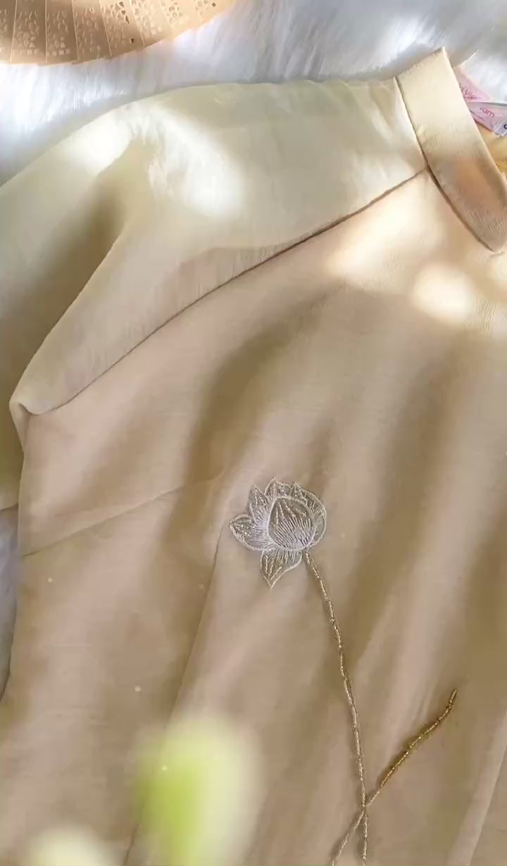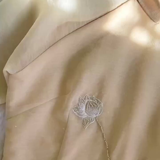Cream Lotus Double Layers Ao Dai For Women | Wedding Ao Dai Vietnam