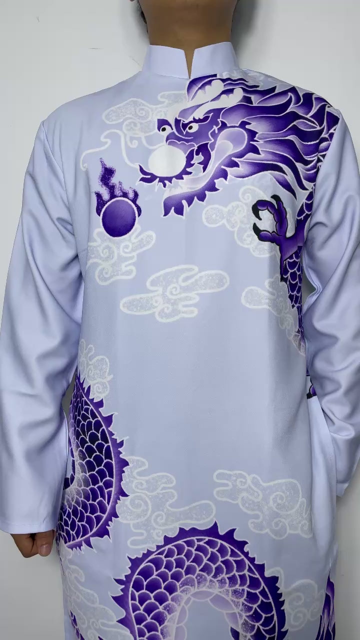 Gray 3D Printed Ao Dai Men Dress | Modern Ao Dai For Men