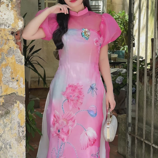 LIEU Luxury Pink Ao Dai with butterfly sparkle | Modern Vietnamese ao dai for women | NO pants