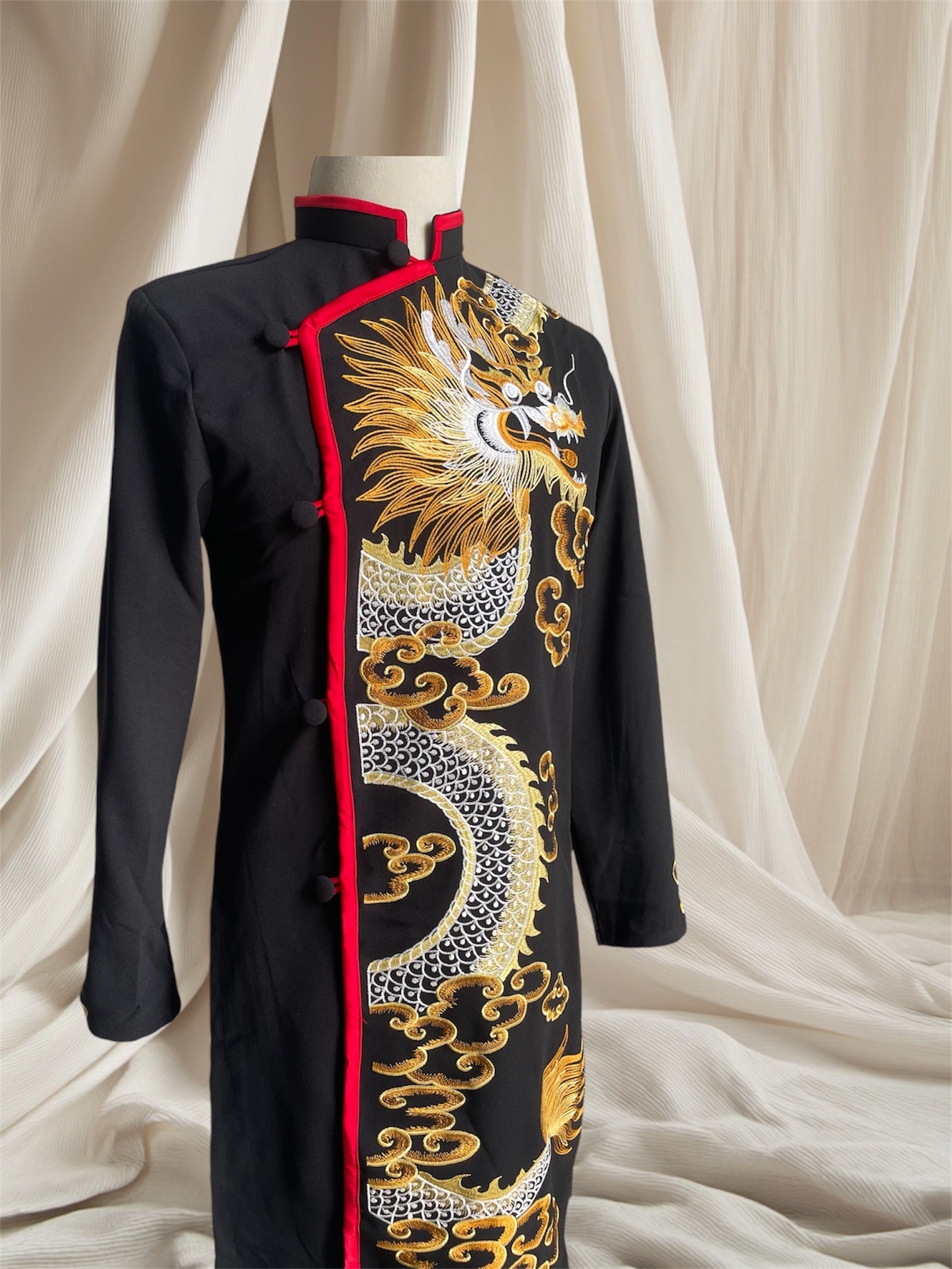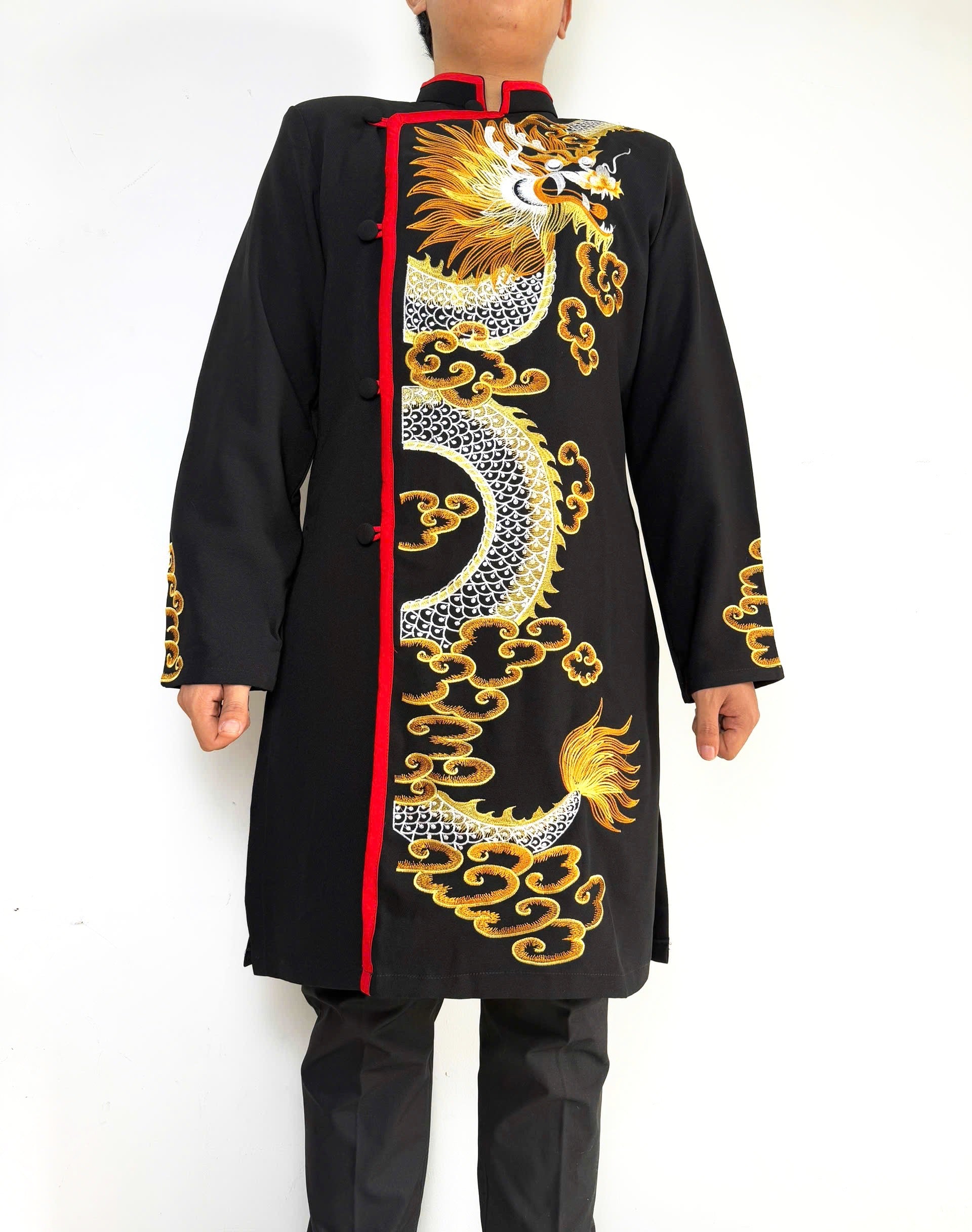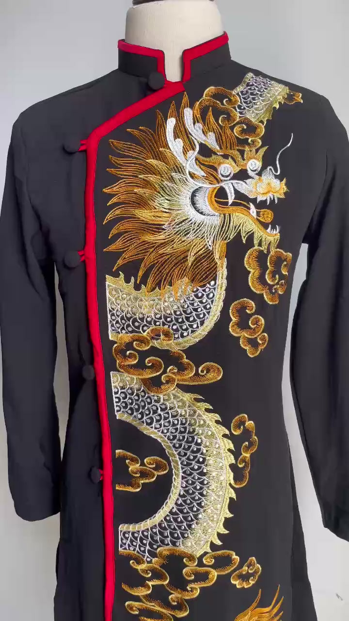 Black Dragon Embroidered Ao Dai For Men - Traditional Ao Dai Men