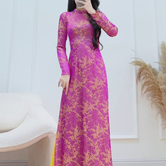 Embrace timeless elegance in this beautifully brocade Ao Dai – a graceful blend of Vietnamese tradition and modern style. Designed for comfort and sophistication, this set is perfect for Lunar New Year, weddings, formal gatherings, and cultural celebrations.