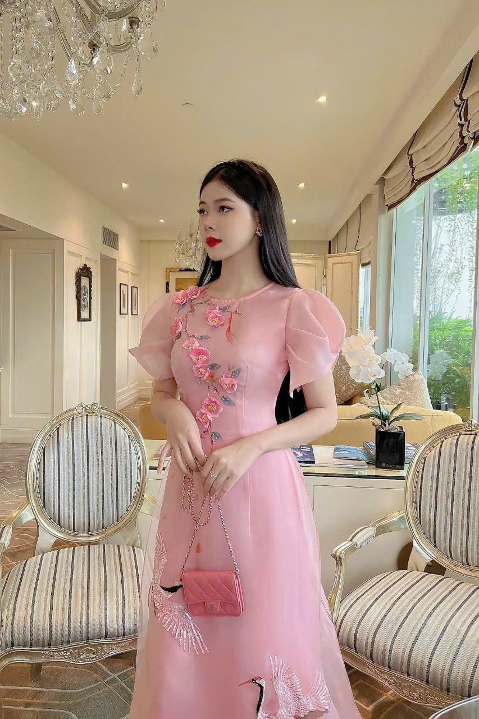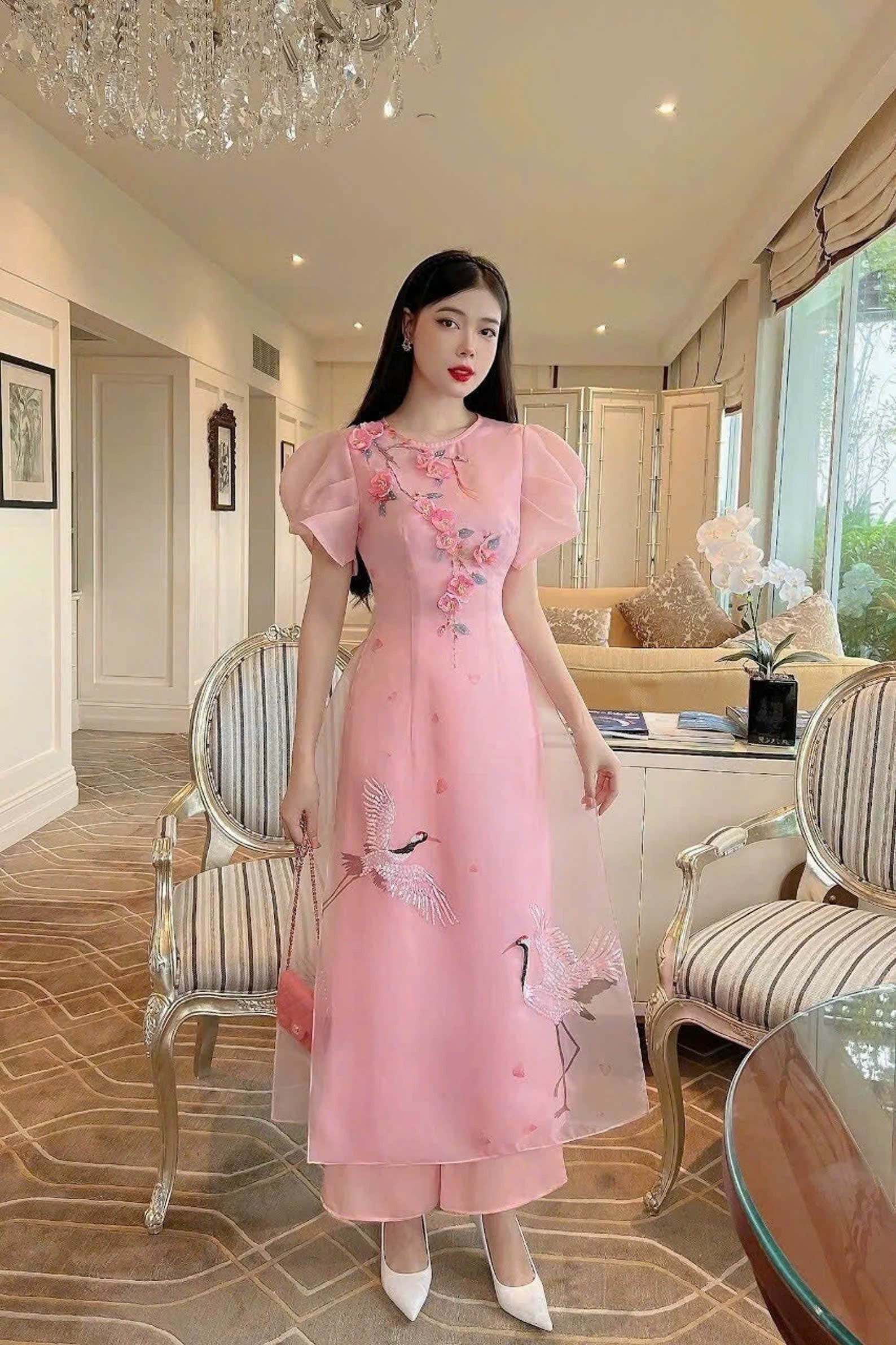 Cranes Sparkle Modern Ao Dai Set | Pink Ao Dai For Events