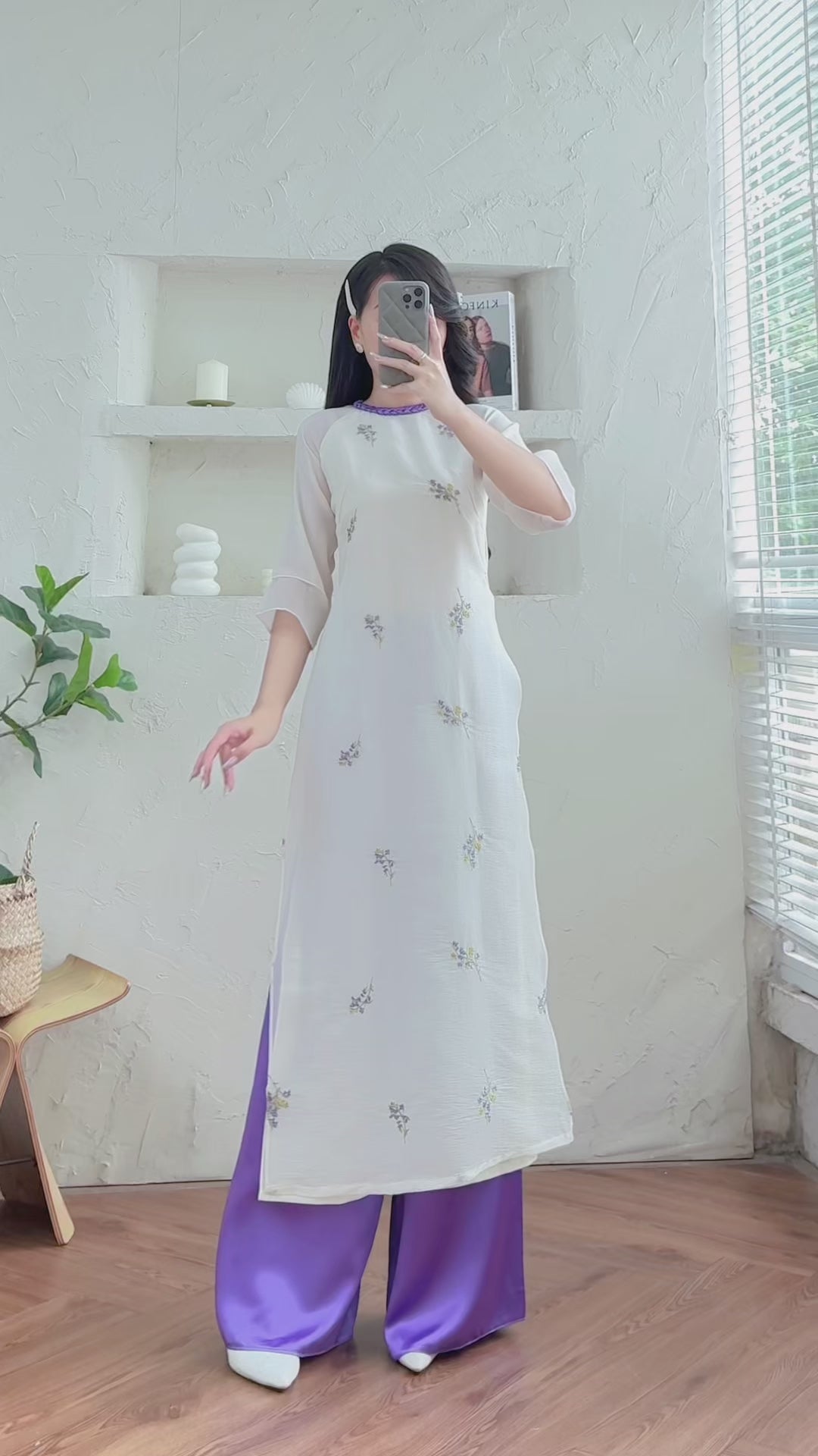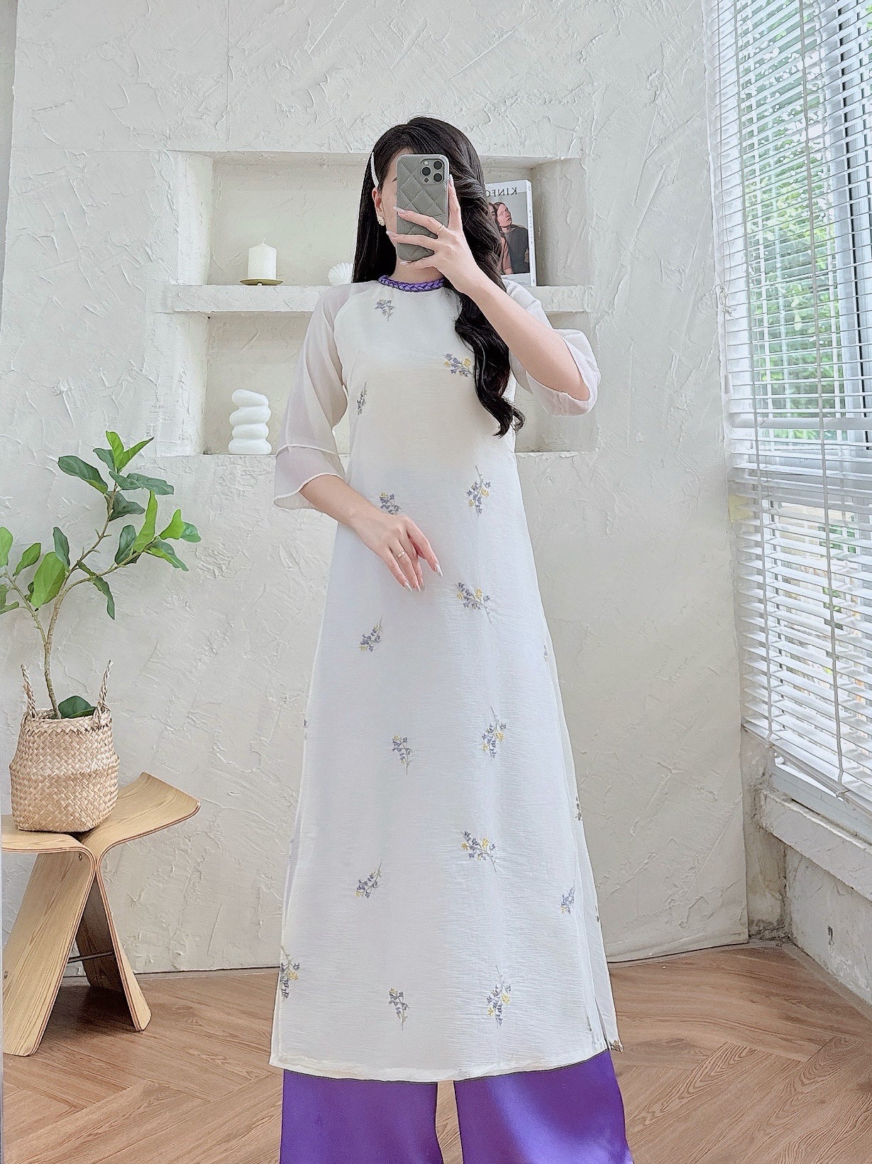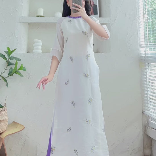 Lavender Embroidery Ao Dai Set | Modern Vietnamese Ao Dai | Included Pants