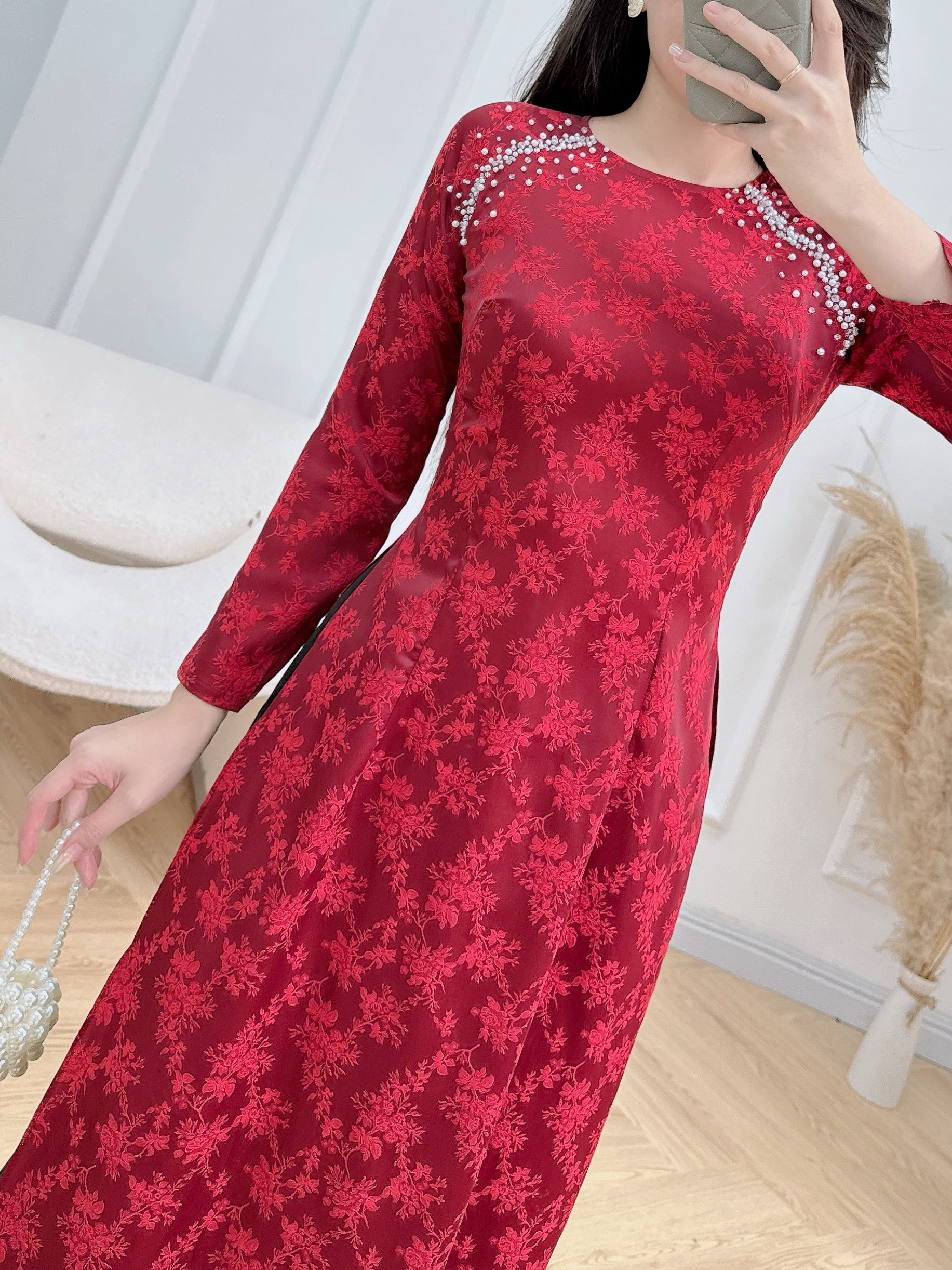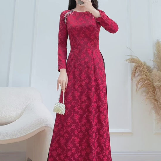 Embrace timeless elegance in this beautifully brocade Ao Dai – a graceful blend of Vietnamese tradition and modern style. Designed for comfort and sophistication, this set is perfect for Lunar New Year, weddings, formal gatherings, and cultural celebrations.