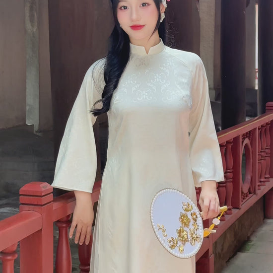 VAN Cream Nha Xa Silk Ao Dai | Vietnamese ao dai for women