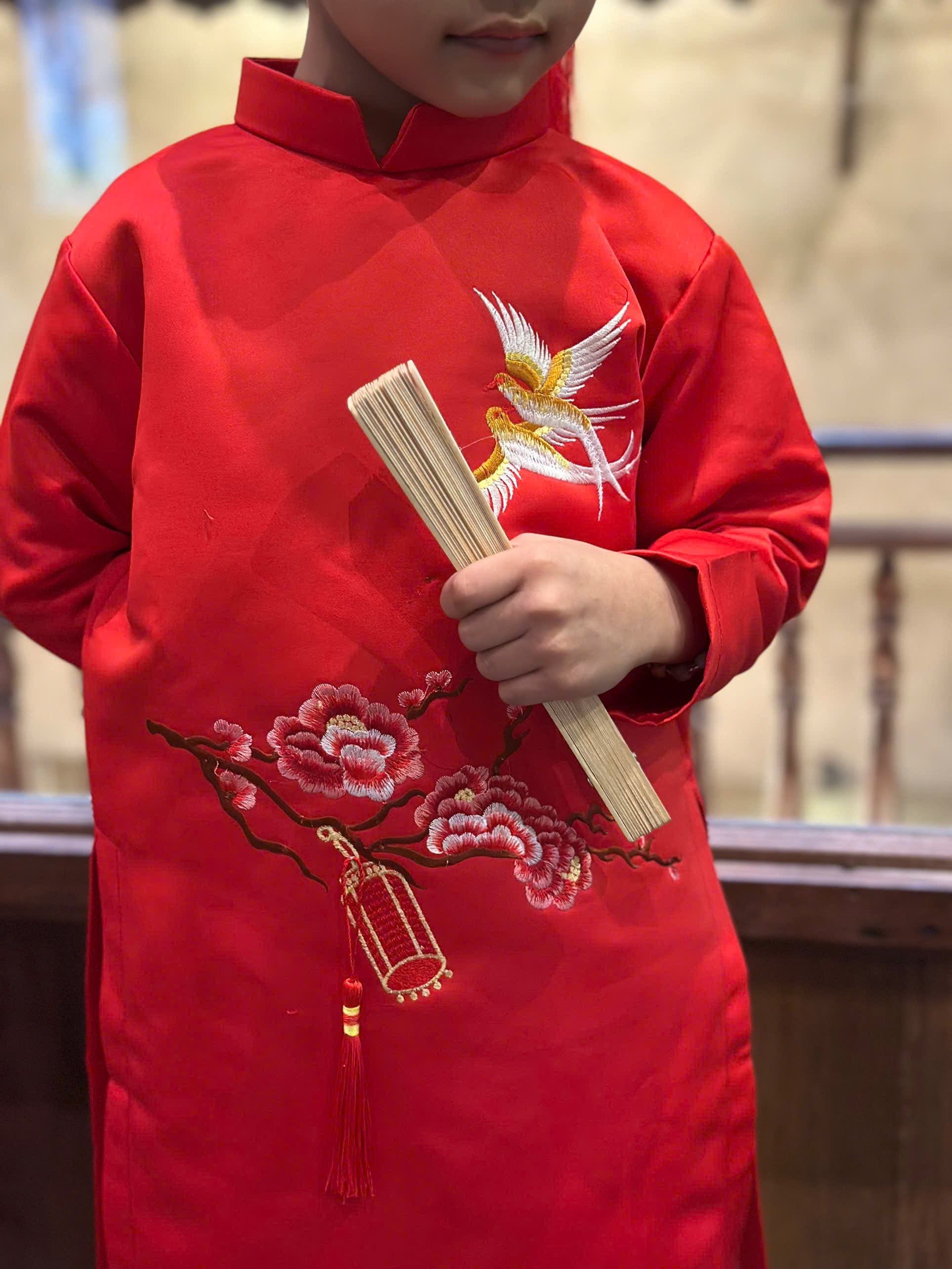 PE6: Swallow Vietnamese Boy Ao Dai - Vietnamese Long Dress Ao Dai For Kid | Boys Ao Dai Dresses
