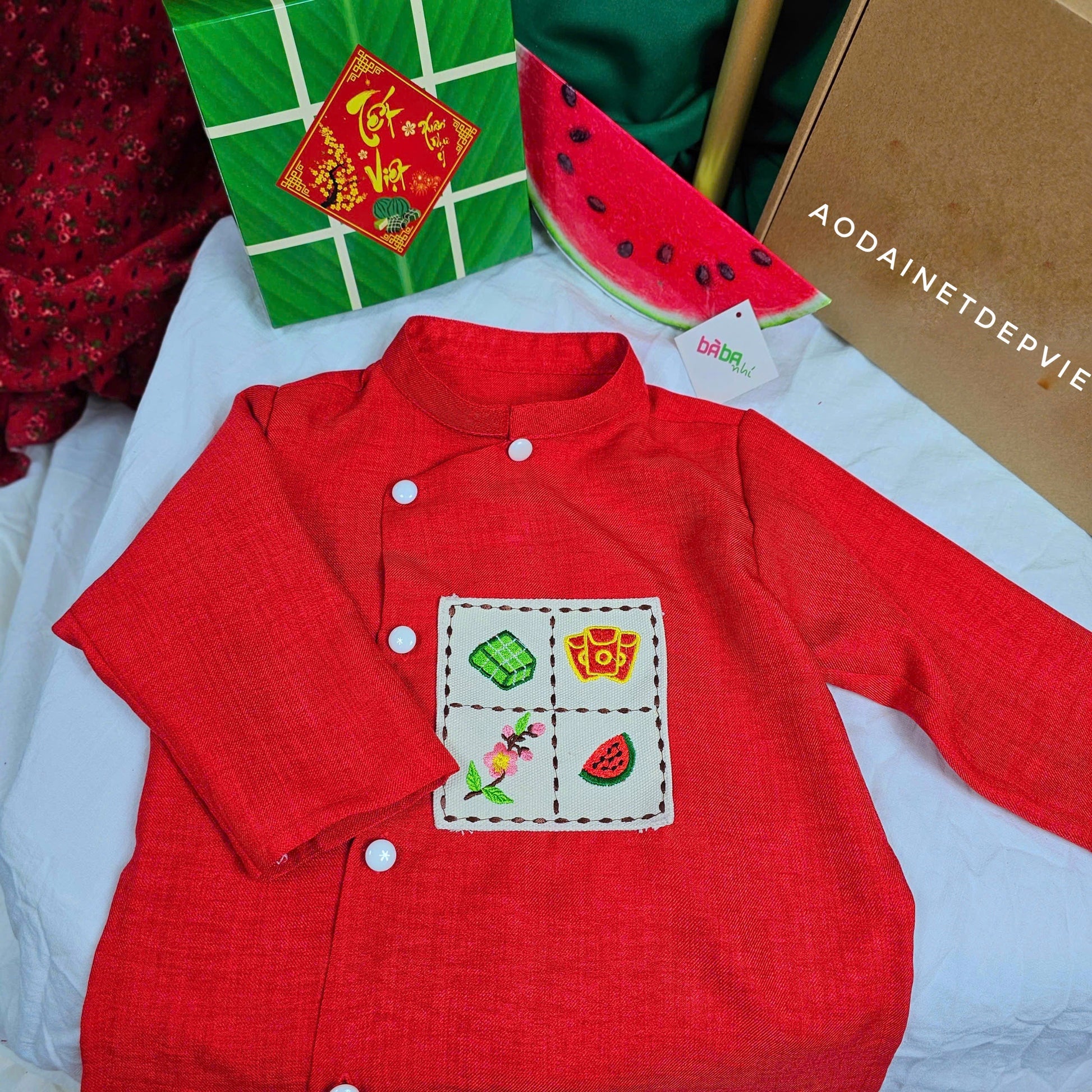 PE4: Red-Yellow Ao Dai For Boys - Boy's Dress | Linen Ao Dai Set