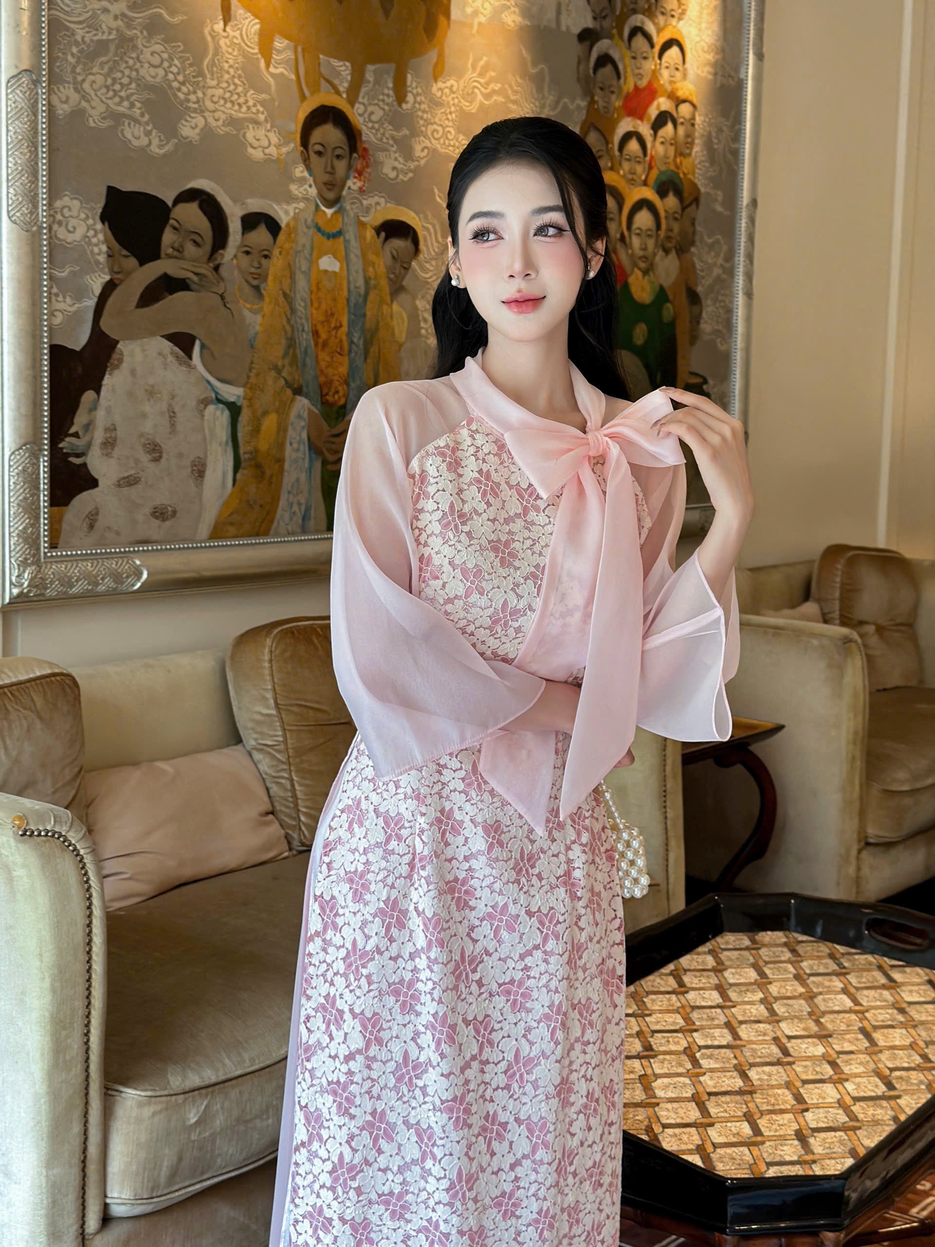 YEN CHI Ao Dai | Pink Floral embroidery Lace Ao Dai | Modern Vietnamese Ao Dai